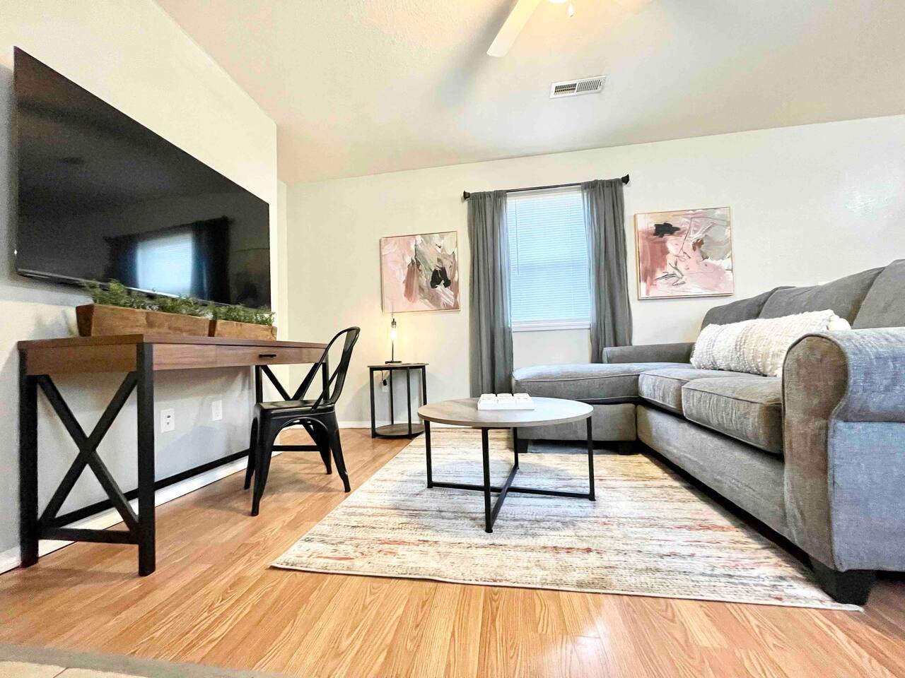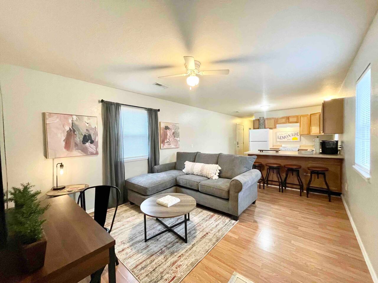 Easy access to everything from this home located in the heart of West Plains! Welcome to our stylish home that features a large living room with 58” smart TV, desk space and a super comfy sectional. The spacious Kitchen is set up with your very own coffee bar. The master bedroom includes a queen size bed and smart tv. The guest bedroom has a full/twin bunkbed with a twin roll out. This room also includes a couch that converts into a bed. Washer/Dryer included!
