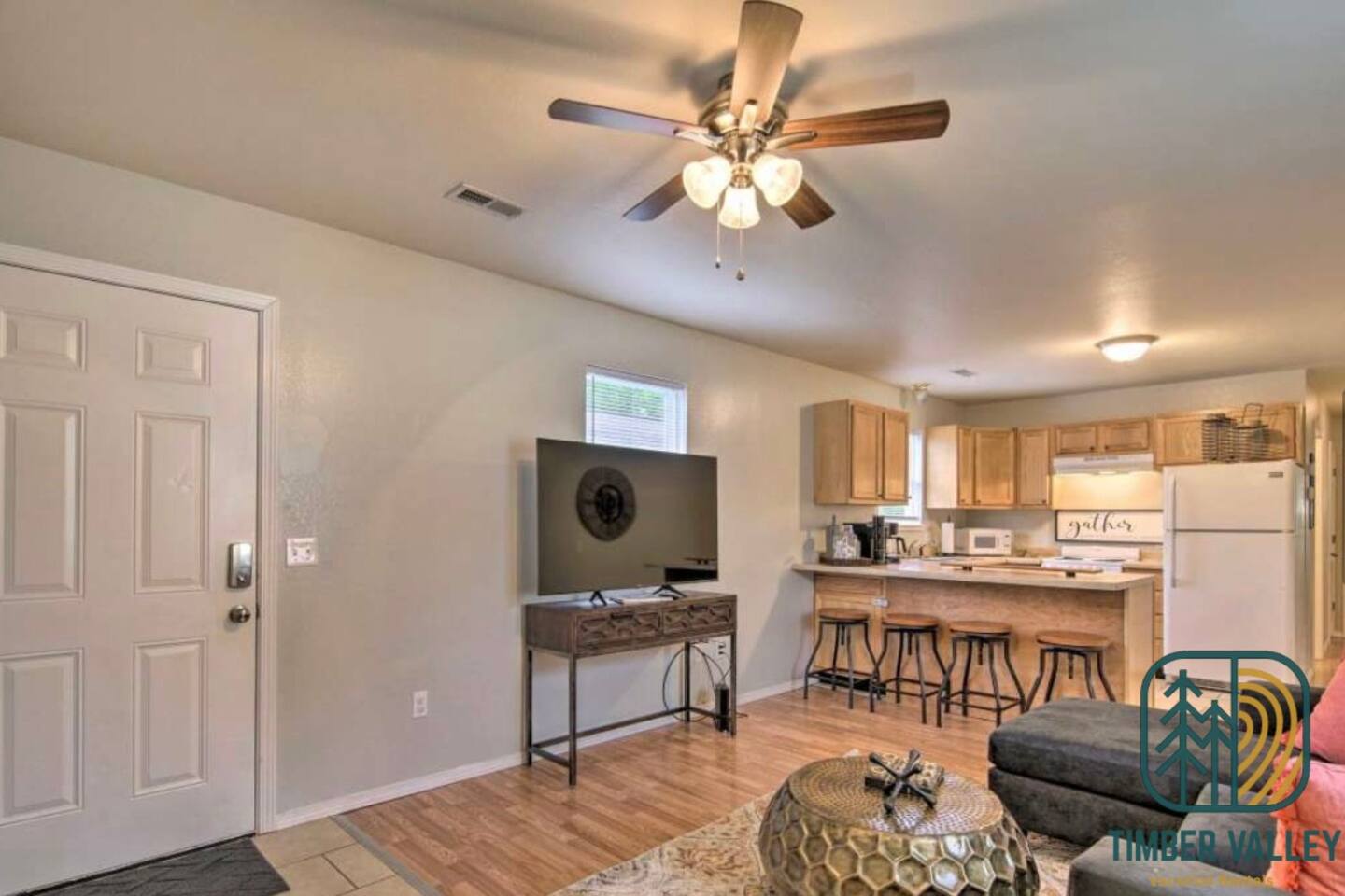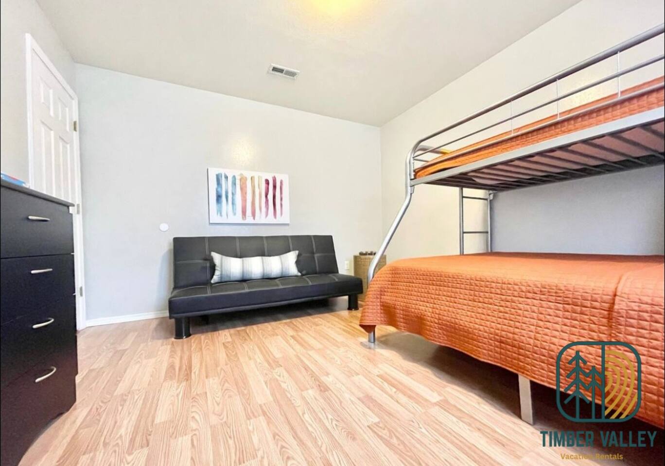 📍 Prime Location in West Plains Stay close to everything: Minutes from downtown West Plains shopping & dining Near Missouri State University–West Plains Close to Ozarks Healthcare (ideal for traveling nurses & medical professionals) 0.5 mi to Harlin Museum 0.9 mi to Avenue Theatre 1.0 mi to West Plains Civic Center 0.6 mi to People’s Park & Aquatic Center Easy drive to Mammoth Spring State Park for hiking, fishing, and Ozarks outdoor adventures Perfect for weekend trips, seasonal events, fairs, and family visits. 🛏 Sleeps 6–7 Comfortably | Family-Friendly Layout Bedroom 1 Queen bed Bedroom 2 Twin over full bunk bed Twin trundle Full futon Great setup for families, small groups, work crews, or extended stays in West Plains. 💻 Work & Relaxation Friendly Fast, reliable WiFi for remote work Dedicated workspace with desk 58” Smart TV with streaming capability Board games & books for family nights Central air conditioning & heating Ceiling fan for added comfort Ideal for traveling professionals, digital nomads, and longer stays. 🍳 Fully Equipped Kitchen + Essentials Cook meals at home with: Dishwasher Microwave Keurig coffee maker Toaster Cooking basics Dishware & flatware Plus washer & dryer, fresh linens & towels, complimentary toiletries, iron, hair dryer, trash bags & paper towels. Everything you need for a stress-free short-term or monthly rental. 🐾 Pet-Friendly Stay Bringing your furry friend? We welcome pets (fee applies, paid before arrival). A great option for pet-friendly lodging in West Plains. 🚗 Easy Parking & Access Driveway parking for 1 vehicle 1 free street parking space (first-come, first-served) 5 stairs required for entry 🏘 Traveling with a Larger Group? We also offer three additional 2-bedroom vacation rentals on-site, perfect for multi-family trips, reunions, contractor crews, or group bookings in West Plains. Message us for combined availability. ✈️ Nearby Airports West Plains Regional Airport – 13.6 miles Springfield-Branson National Airport – 118 miles St. Louis Lambert International Airport – 208 miles
