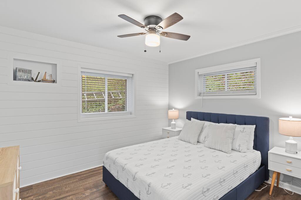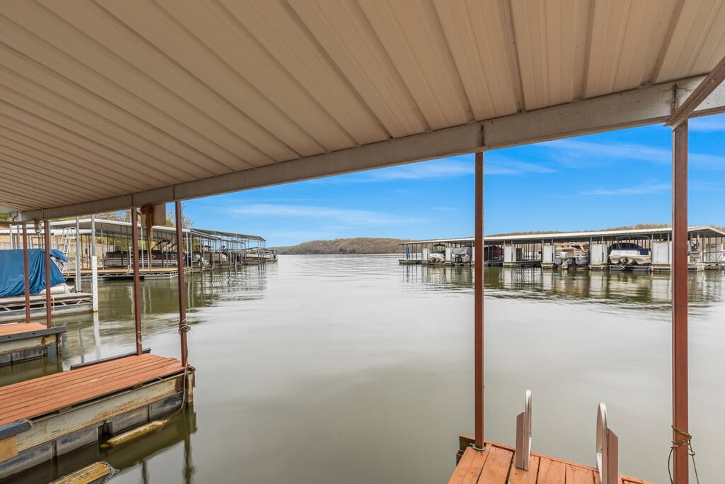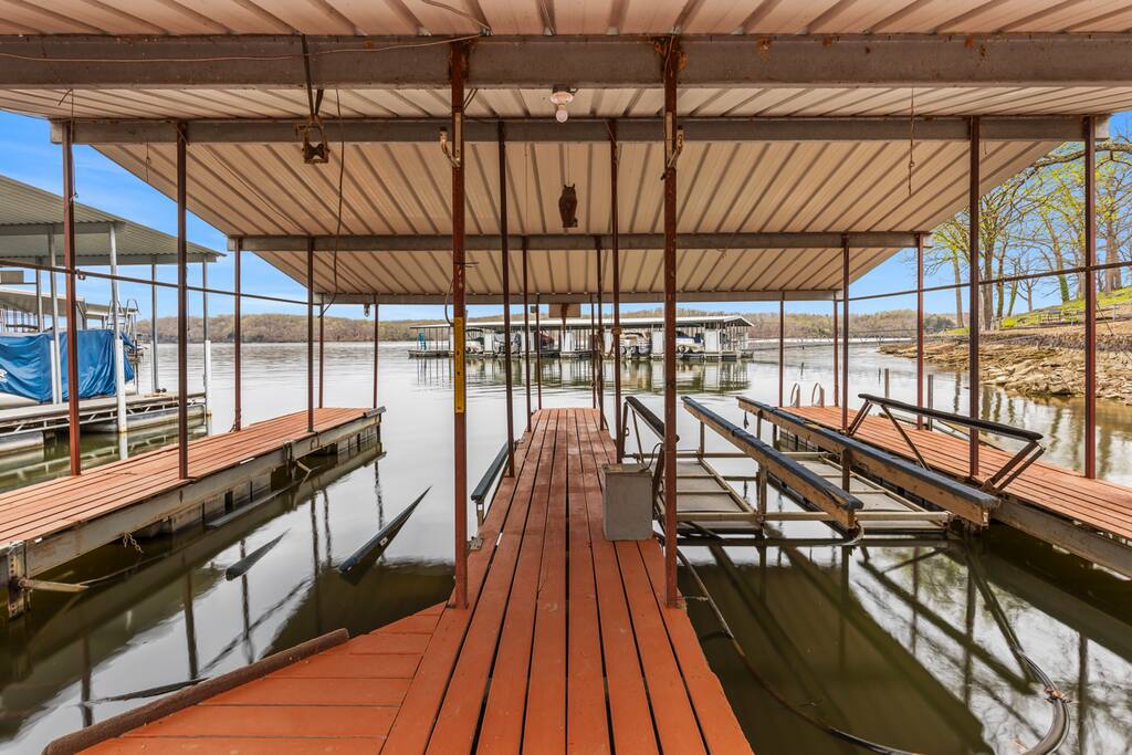 This listing is one side of a duplex. Treat your family to an unforgettable lake getaway in this charming 2 bedroom, 1 bath waterfront vacation rental! With stunning views of the lake, a dock equipped with fishing poles, a stylish coastal inspired design, and open concept living areas perfect for gathering, this duplex has everything you need for an amazing trip. The dock, hot tub and patio may be shared depending on availability, but this rental includes a dedicated slip.