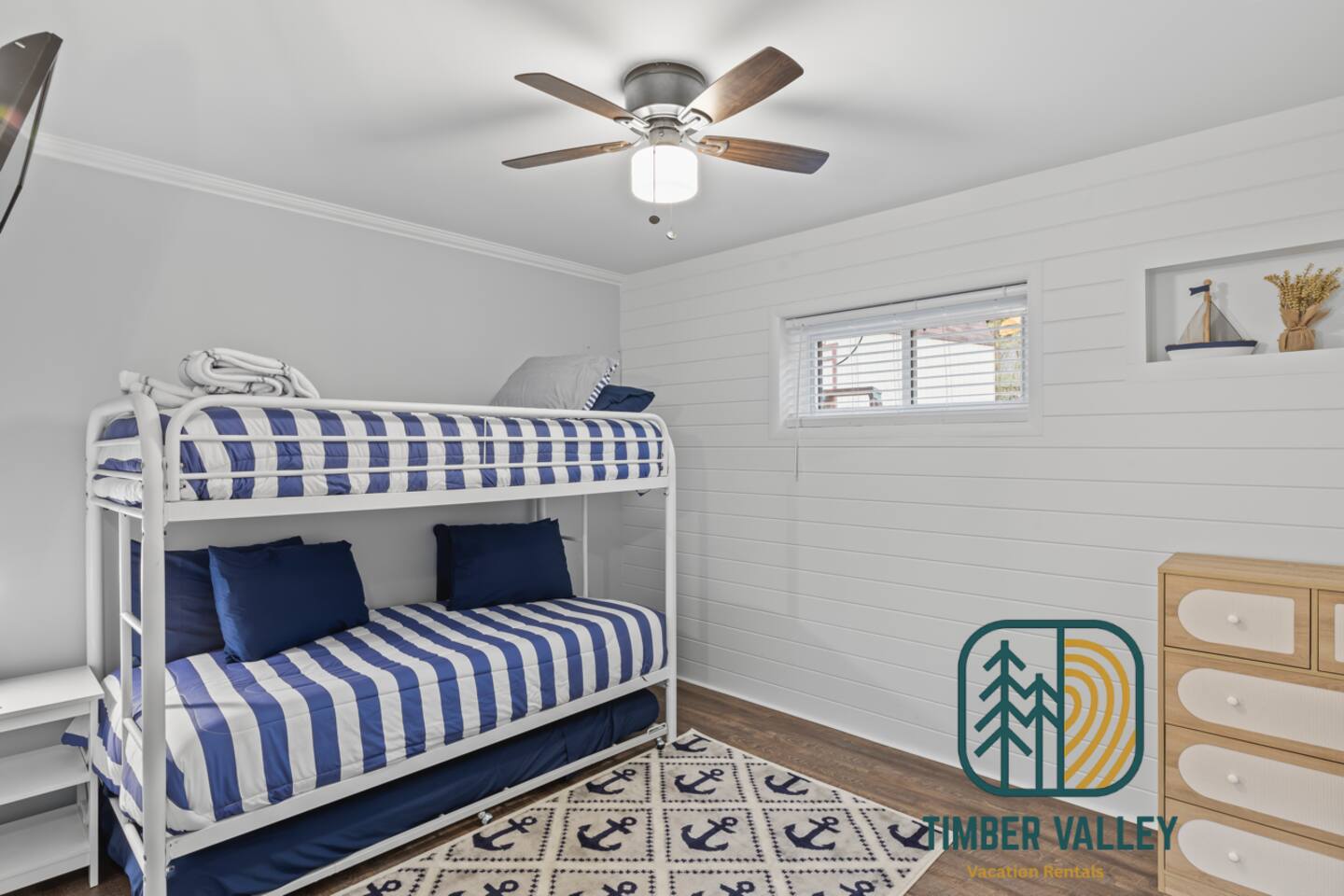 This is one side of a duplex — other guests may be staying in the neighboring unit. Treat your family to an unforgettable lake getaway in this 2BR, 1 bath waterfront rental! Stunning lake views, dock with fishing poles, coastal design, and open concept living. The dock, hot tub, and patio may be shared with guests from the other unit. A dedicated slip is included.