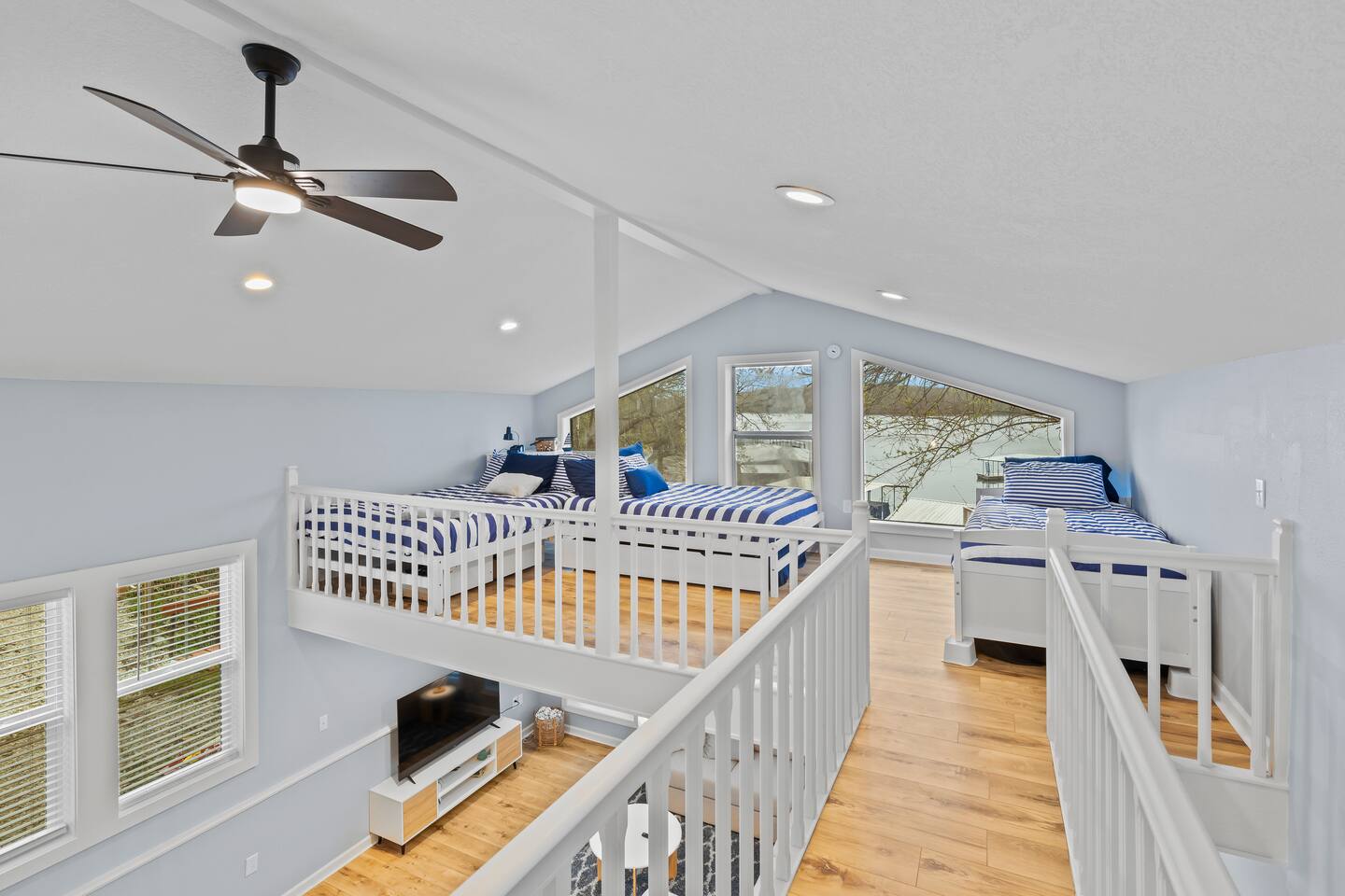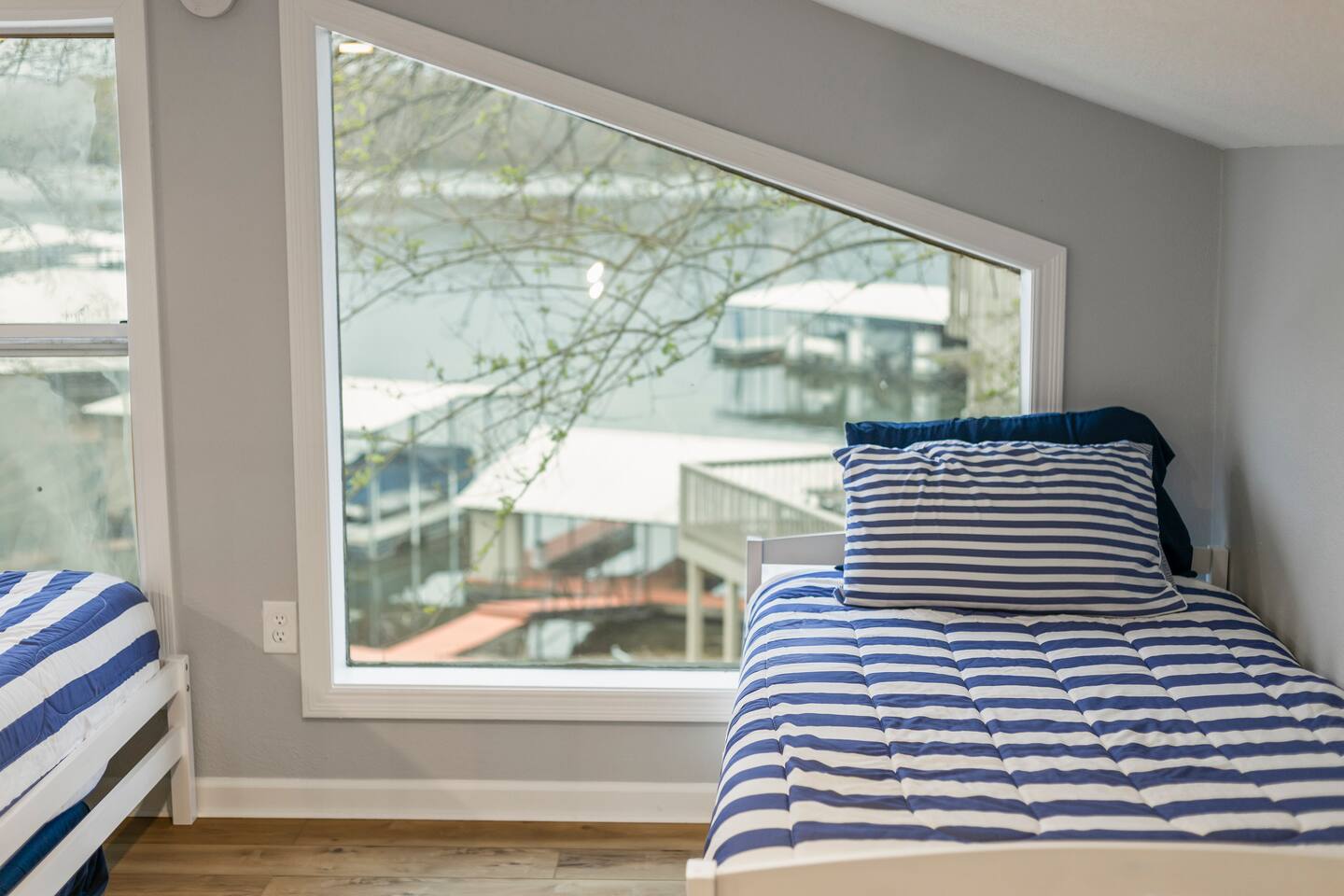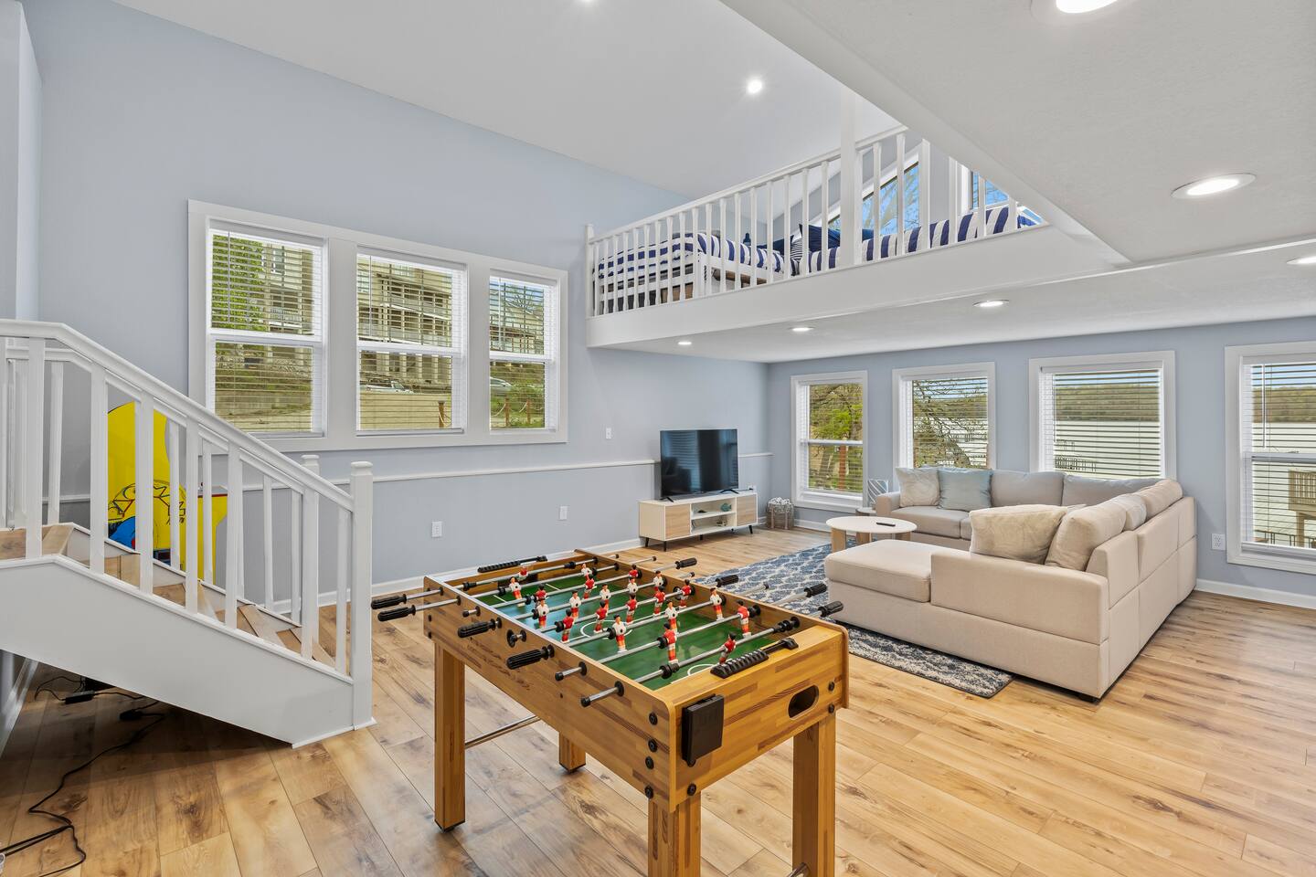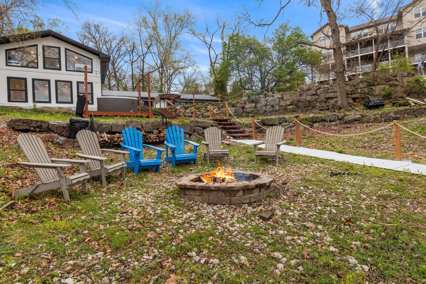 This listing is for the entire property. Welcome to a fabulous lake getaway in this freshly updated waterfront home that can accommodate 23 guests! With a stylish coastal inspired design, soothing blue and white décor, multiple living areas, a hot tub, fire pit, and lovely open floor plan, it's perfect for large group vacations, family reunions, etc. Next to the state park marina, renting a boat is a breeze. Create lifelong memories at this beautiful home base for your next big lake vacation!