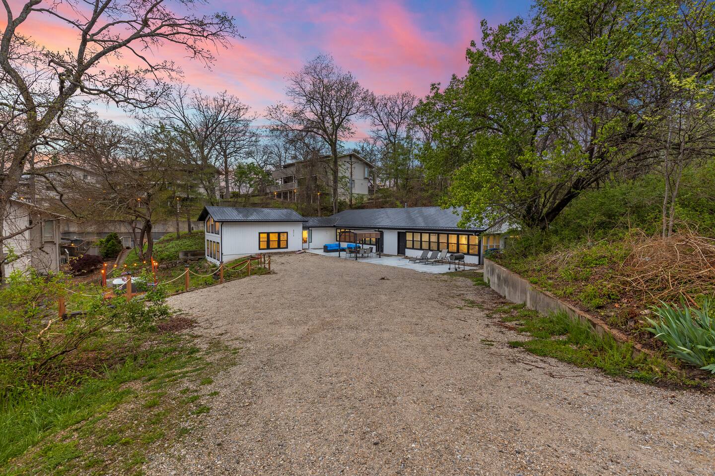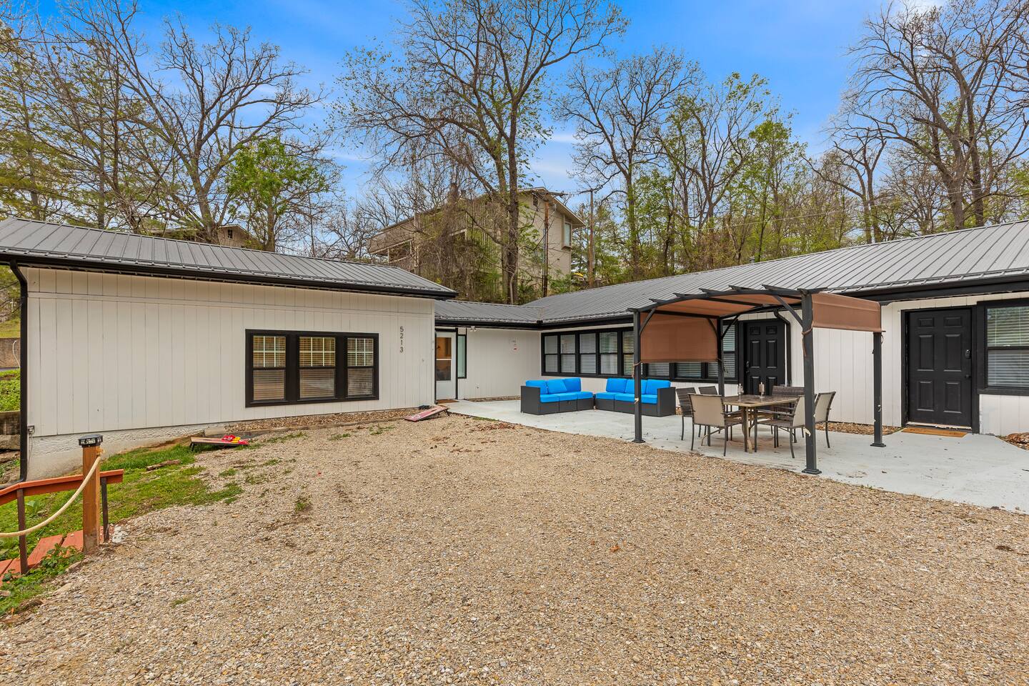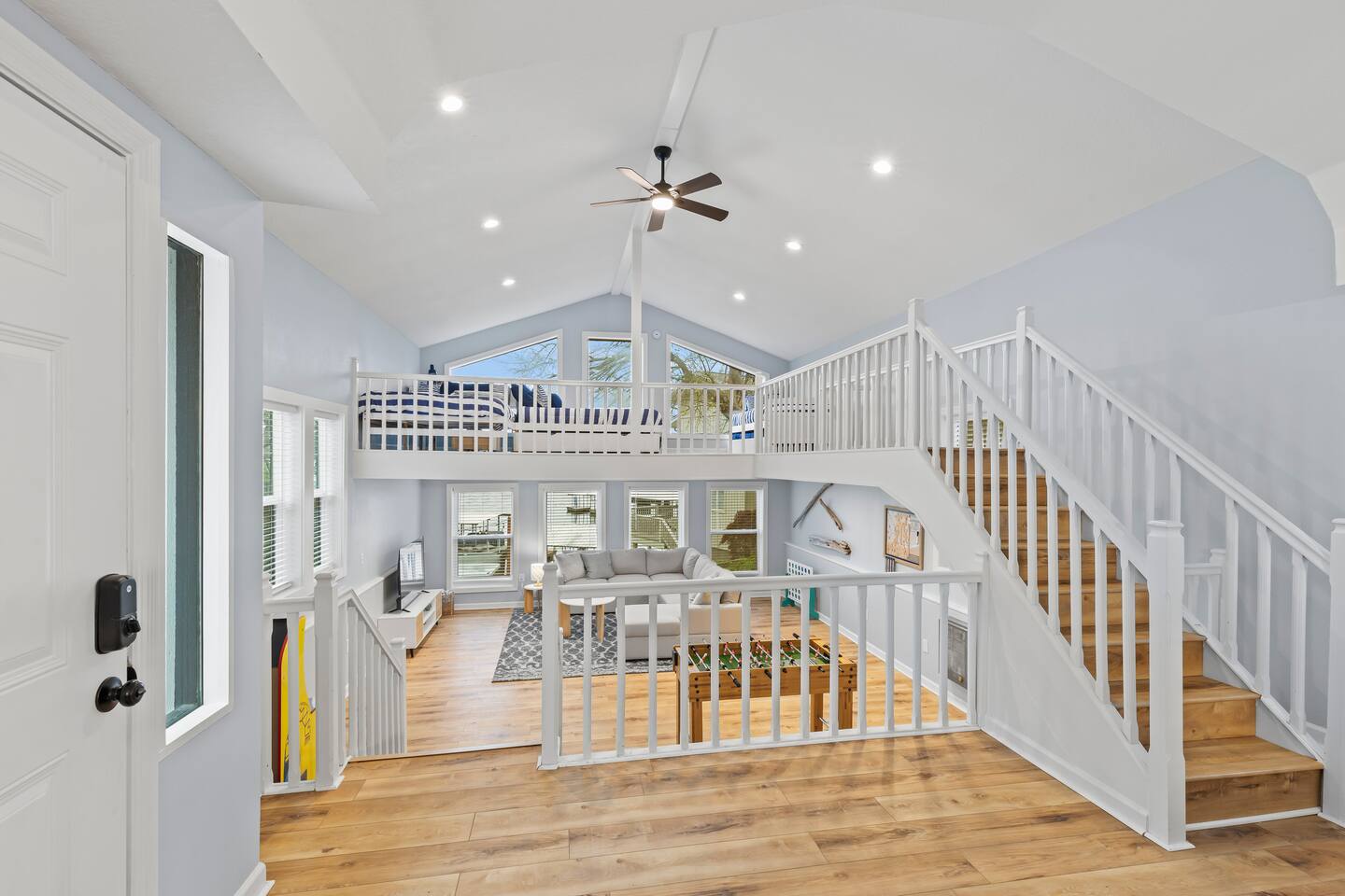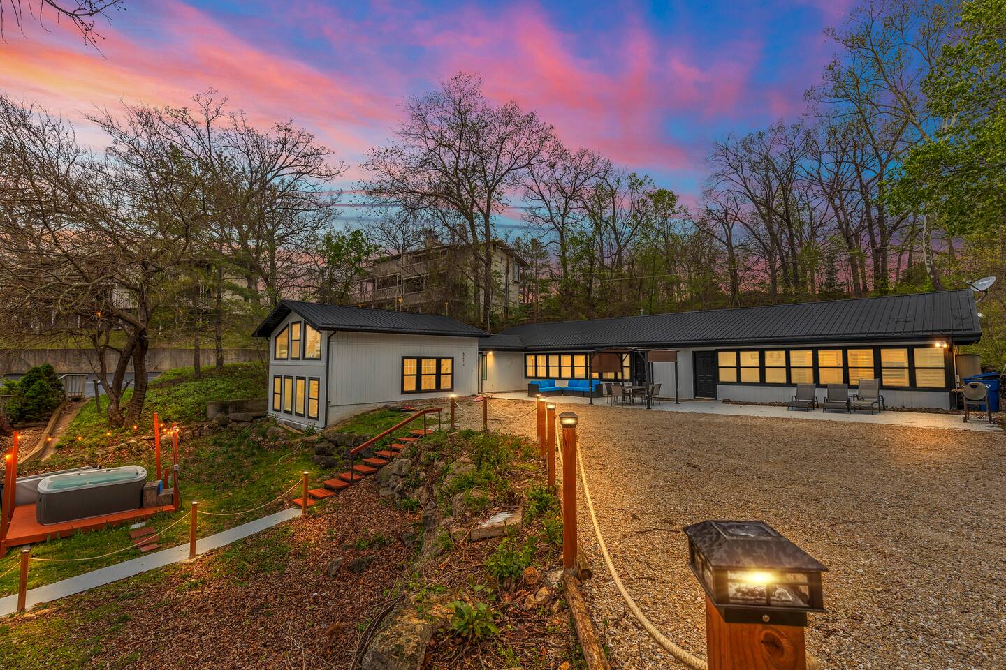 This listing is for the entire property. Welcome to a fabulous lake getaway in this freshly updated waterfront home that can accommodate 23 guests! With a stylish coastal inspired design, soothing blue and white décor, multiple living areas, a hot tub, fire pit, and lovely open floor plan, it's perfect for large group vacations, family reunions, etc. Next to the state park marina, renting a boat is a breeze. Create lifelong memories at this beautiful home base for your next big lake vacation!