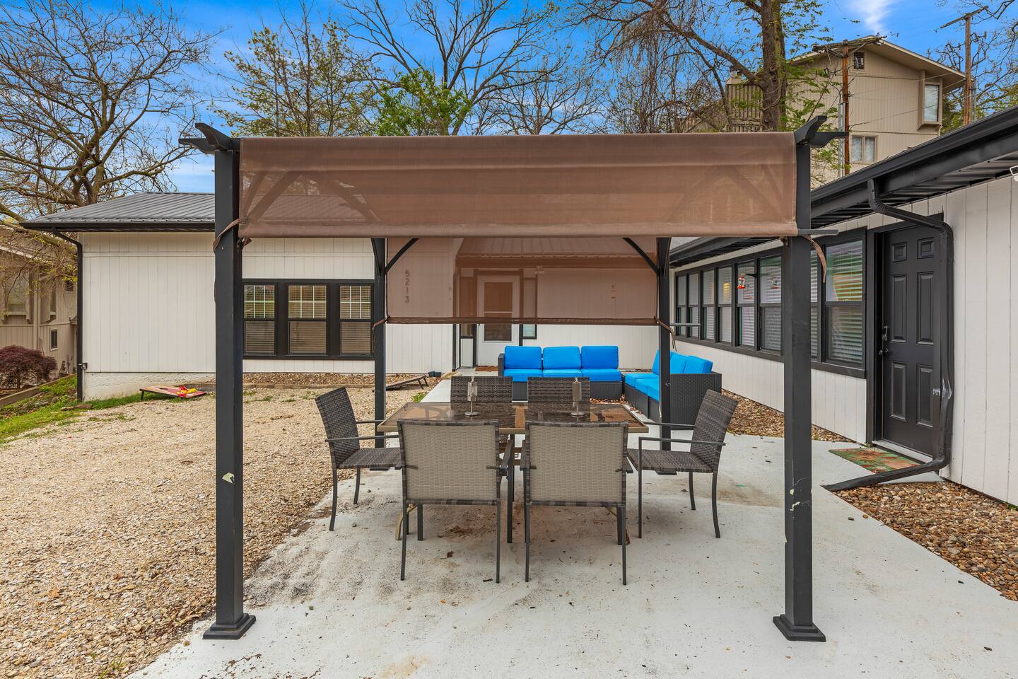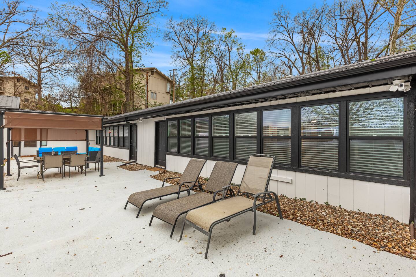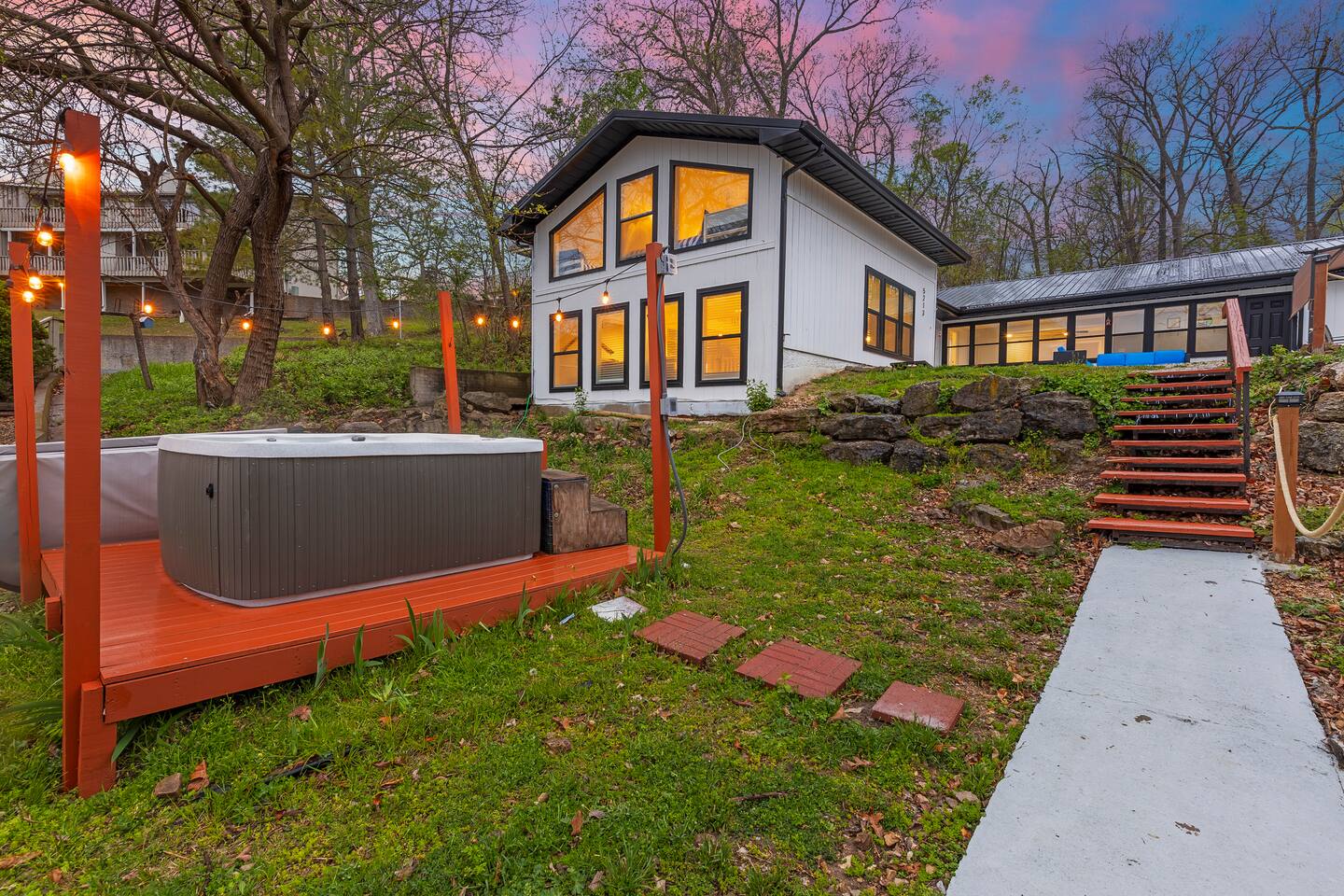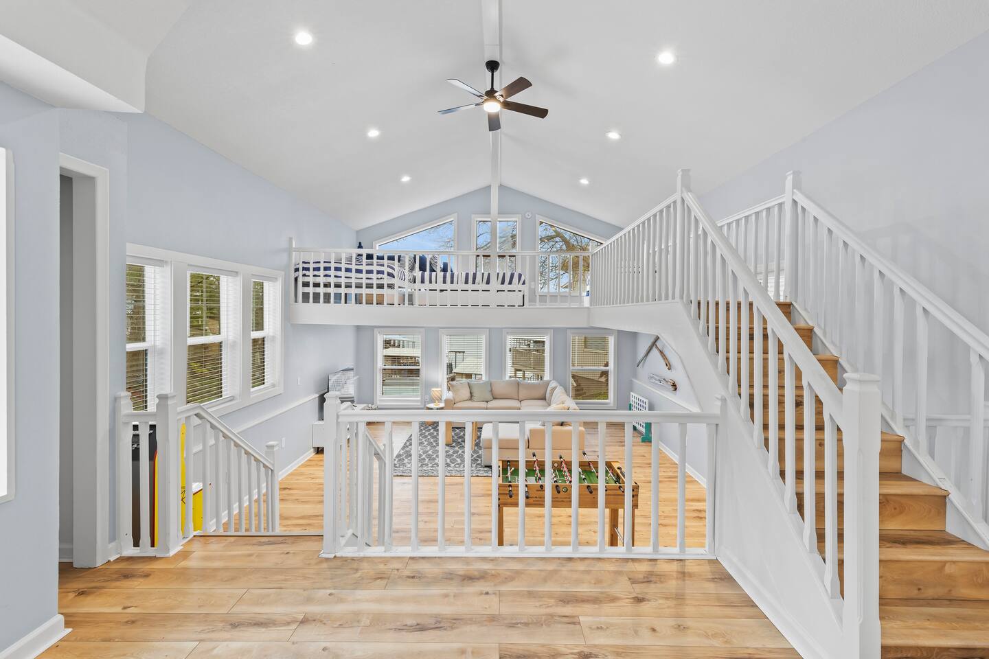 This listing is for the entire property. Welcome to a fabulous lake getaway in this freshly updated waterfront home that can accommodate 23 guests! With a stylish coastal inspired design, soothing blue and white décor, multiple living areas, a hot tub, fire pit, and lovely open floor plan, it's perfect for large group vacations, family reunions, etc. Next to the state park marina, renting a boat is a breeze. Create lifelong memories at this beautiful home base for your next big lake vacation!